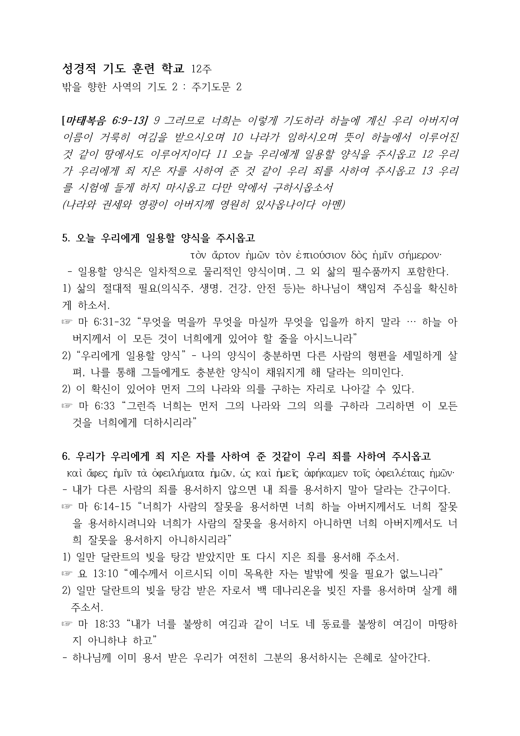 성경적 기도 훈련 학교 12주차 - 밖으로 향하는 사역의 기도#2 - 주기도문
